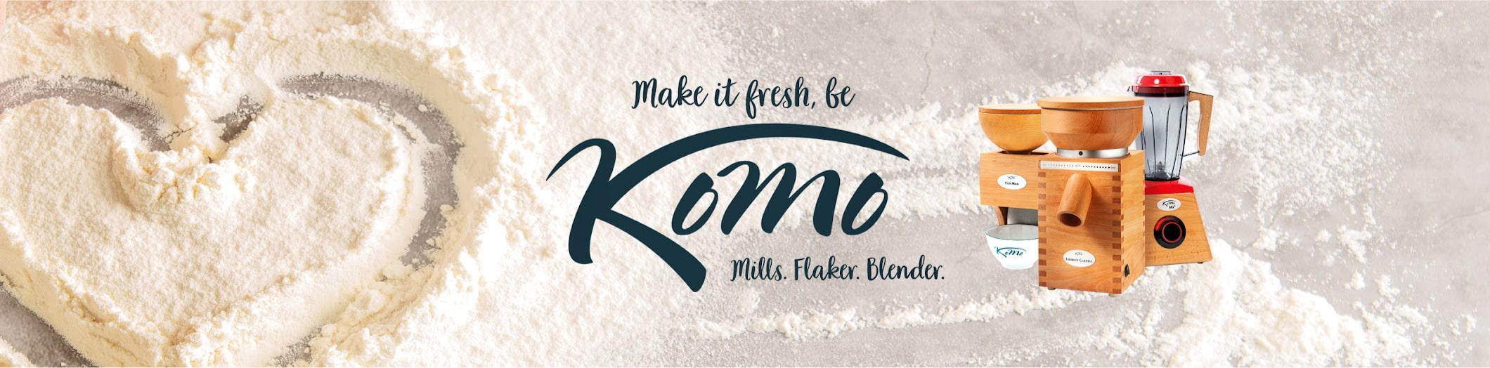 Komo ürünleri daha kaliteli bir yaşam için tahılları kendi mutfağınızda kendinizin öğütebileceği imkanı sunar. Böylece ham olarak aldığınız tahılları tam olarak ne ihtiva ettiğini bilerek sağlıklı unlara dönüştürebilirsiniz.